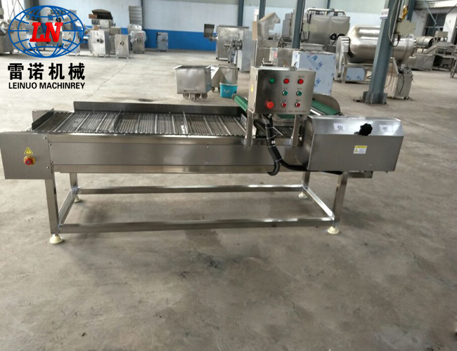 該流水線主要由清洗段、提升輸送段、震動瀝水段以及風干除水段組成,主要用于袋裝食品的高低溫殺菌后,產品表面油污、油漬的連續清洗及風干。